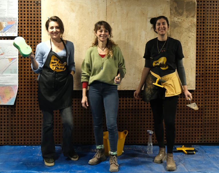 We create buildings and artistic interventions using natural building materials in both urban and rural settings. Our collective specializes in Clay Murals, Artistic Earthen Plasters, Lime Plasters, and Tadelakt Design and Applications. Engaging with both traditional and contemporary natural construction techniques, Poçolana organizes workshops and educational programs in Türkiye and internationally to promote the use of sustainable materials and ecological principles. Through the natural wall artworks, we seek to tell Social Stories and highlight Community Narratives.