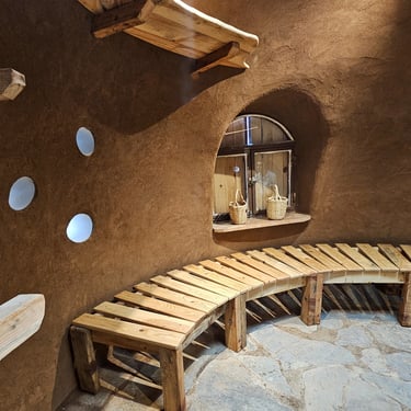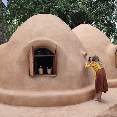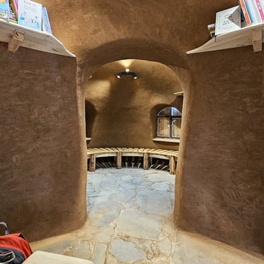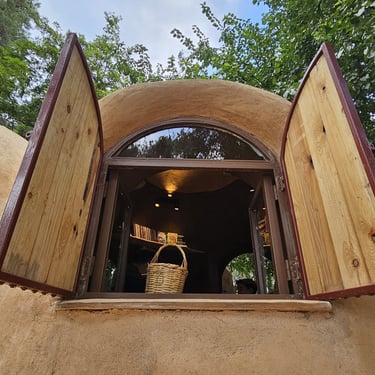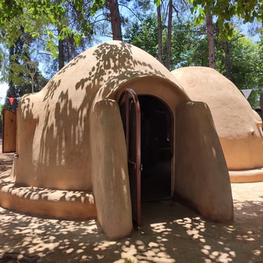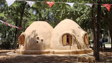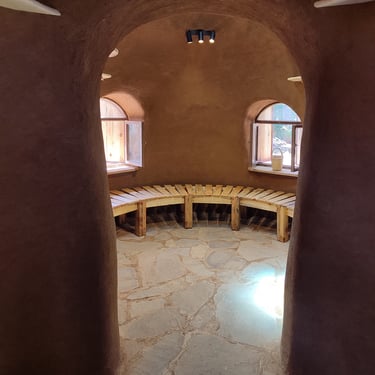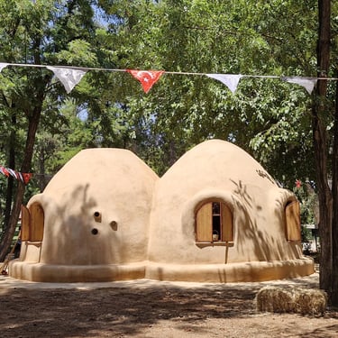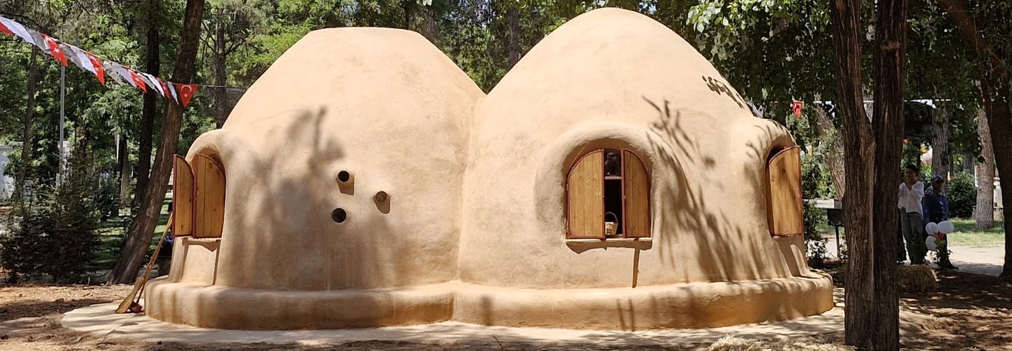The design prioritizes locality, accessibility, durability, and sustainability. The primary building material is a mixture of locally sourced soil—optimized through laboratory testing—and a small percentage of cement. Using the Superadobe technique, earth-filled bags were laid in successive layers and compacted to form the domes. The approximately 40 cm thick monolithic walls enhance both thermal comfort and seismic stability. The interior surfaces were finished with earthen plaster, while the exterior received a specially formulated lime plaster.