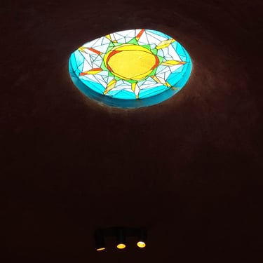 Located in Kahramanmaraş, Türkoğlu, within the 23 Nisan Park, the structure is formed by the intersection of two domes, each 3.5 meters in diameter. Designed for use by children, youth, and adults alike, the library serves as a public learning space open to reading, gathering, and workshop activities. The window openings are arranged at a child-friendly height, while the stained-glass oculus at the top brings daylight into the interior, creating a warm and luminous atmosphere within the domed space.