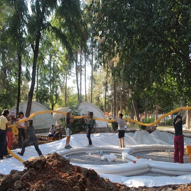 Developed in 1984 by architect Nader Khalili, the Superadobe technique is a low-tech, collective, and highly resilient earthen construction method used across different geographies for emergency shelter solutions. Its nature makes it particularly suitable for post-disaster contexts, enabling local communities to participate in the production, maintenance, and repair of their built environment—strengthening both social resilience and long-term sustainability.